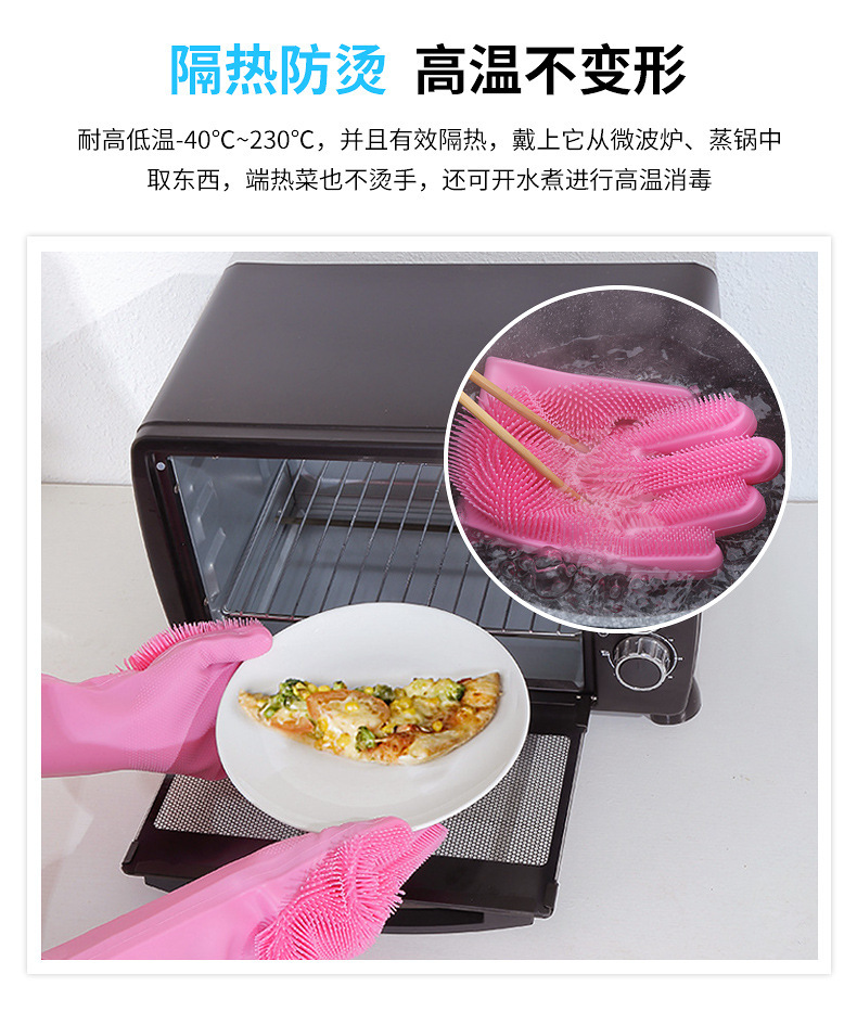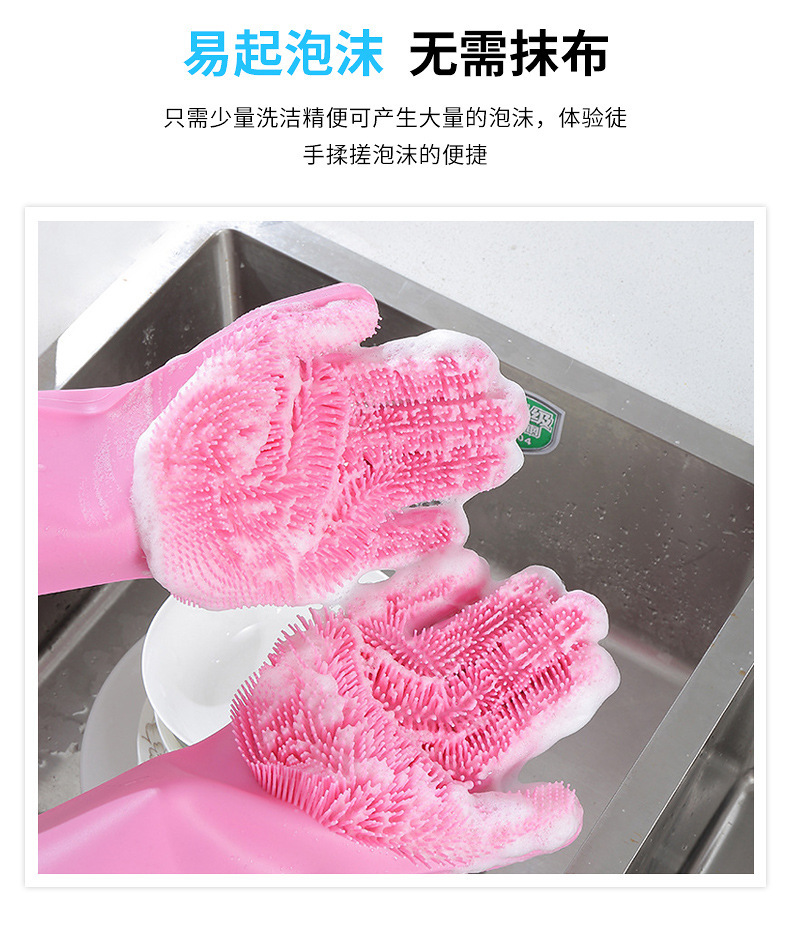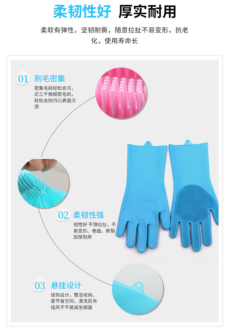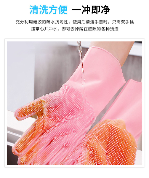 3.手套易清洗徹底不滋生細(xì)菌,這一點是很多清潔用品都做不到的,油脂、醬油、醋、污垢等等都無法有力附著在硅膠表面,而其他比如鋼絲球、海綿塊、洗碗布等等材質(zhì),都做不到,使用硅膠洗碗手套實在是讓人放心。
